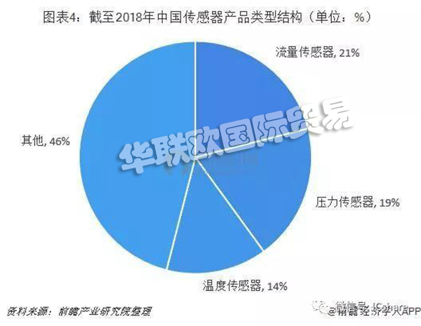 根據(jù)傳感器類型不同,具體包括溫度和濕度傳感器、壓力傳感器、圖像傳感器、光傳感器、位置傳感器、重力傳感器等。流量傳感器、壓力傳感器、溫度傳感器占據(jù)最大的市場份額。