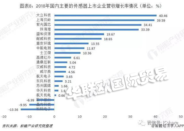 我國的傳感器市場增長迅速,年均增長速度超過10%,據(jù)統(tǒng)計,2018年國內(nèi)的傳感器市場規(guī)模達到1472億元。2018年國內(nèi)傳感器上市企業(yè)整體的營收增長明顯,八成以上的企業(yè)營收都出現(xiàn)增加,僅有三家企業(yè)(歌爾股份(002241)、晶方科技(603005)、科陸電子(002121))出現(xiàn)負(fù)增長。其中歌兒股份營收下滑的原因是智能手機增速放緩和VR產(chǎn)品銷售未達預(yù)期,導(dǎo)致傳感器業(yè)績不理想;晶方科技的傳統(tǒng)傳感器產(chǎn)品面臨的激烈市場競爭導(dǎo)致價格戰(zhàn),同時它們加大了應(yīng)用在汽車電子上MEMS智能傳感器的投入放緩了營收增長率。