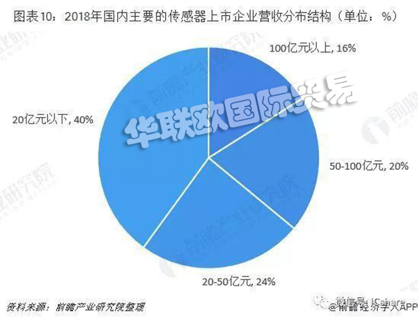 從營收分布結(jié)構(gòu)來看,超過100億元的僅占16%,超過50億元以上為36%。此外,年營收20億以下的企業(yè)占比4成,這也反映了國內(nèi)傳感器行業(yè)激烈的競爭形勢。