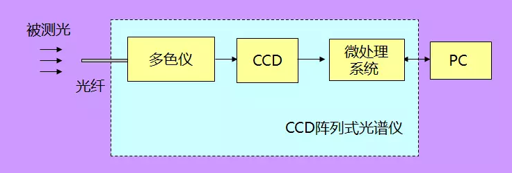 陣列掃描式光譜儀通常由多色儀、陣列式光電探測器、數(shù)據(jù)處理系統(tǒng)等幾部分組成,其中多色儀與單色儀最大的不同在于沒有機(jī)械運動部件,保證了儀器長久運行的穩(wěn)定性和測量重復(fù)性,在結(jié)構(gòu)上也可以設(shè)計得非常小巧緊湊。陣列探測器采用全光譜同步探測方式,具有檢測速度快、靈敏度高、光譜響應(yīng)寬、動態(tài)范圍大、重復(fù)性好、分辨率高等特點。