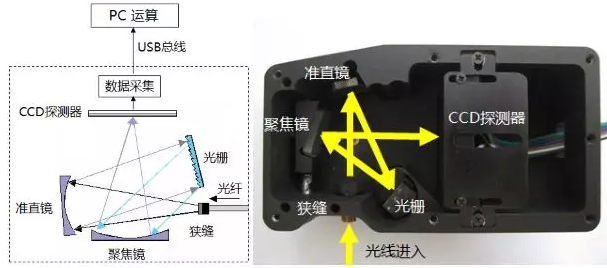 傳統(tǒng)的機(jī)械掃描式光譜儀需要旋轉(zhuǎn)光柵來對整個光譜進(jìn)行掃描,結(jié)構(gòu)復(fù)雜,體積龐大,測量速度慢。隨著光電子技術(shù)的持續(xù)發(fā)展,基于陣列式光電探測器的快速掃描光譜儀得到廣泛應(yīng)用。陣列式光譜儀不必移動光柵即可完成對光譜的掃描,可瞬態(tài)采集數(shù)據(jù),實時輸出。同時,陣列式光譜儀系統(tǒng)具有模塊化的特點,可根據(jù)不同的應(yīng)用需要來選擇組件,采用各種不同類型的采樣光纖探頭,色散器件,聚焦光學(xué)系統(tǒng)和檢測器來搭建光學(xué)測量平臺,主要分為微型E+H光譜分析儀和高精度E+H光譜分析儀兩大類。