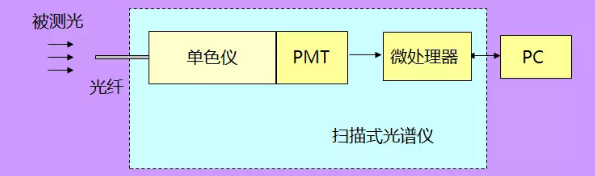 機(jī)械掃描式光譜儀通常使用光電倍增管(PMT)作為光電探測器,PMT是一種對紫外光、可見光和近紅外光極其敏感的特殊電子管,它能將微弱光信號通過光電效應(yīng)轉(zhuǎn)變成電信號輸出,使光信號能夠被測量。
