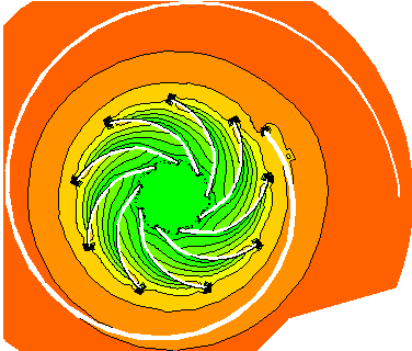 蝸殼是指葉輪出口到下一級(jí)葉輪入口或到泵的出口管之間截面積逐漸增大的螺旋形流道。其流道逐漸擴(kuò)大,出口為擴(kuò)散管狀。液體從葉輪流出后,其流速可以平緩地降低,使很大一部分動(dòng)能轉(zhuǎn)變?yōu)殪o壓能。