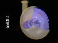 含氣泡的液體擠入高壓區(qū)后急劇凝結(jié)或破裂。因氣泡的消失產(chǎn)生局部真空,周圍的液體就以極高的速度流向氣泡中心,瞬間產(chǎn)生了極大的局部沖擊力,造成對(duì)葉輪和泵殼的沖擊,使材料受到破壞。