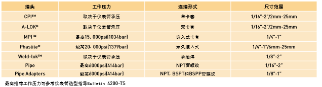 Parker精密儀表接頭廣泛用于過程控制、電力、石化和天然氣 等行業(yè),為液體、氣體和化學(xué)品系統(tǒng)連接提供解決方案。派克始終堅(jiān)持為客戶設(shè)計(jì)和制造穩(wěn)定、可靠、高品質(zhì)的儀表 接頭。Parker接頭分為以下6類供客戶參考: