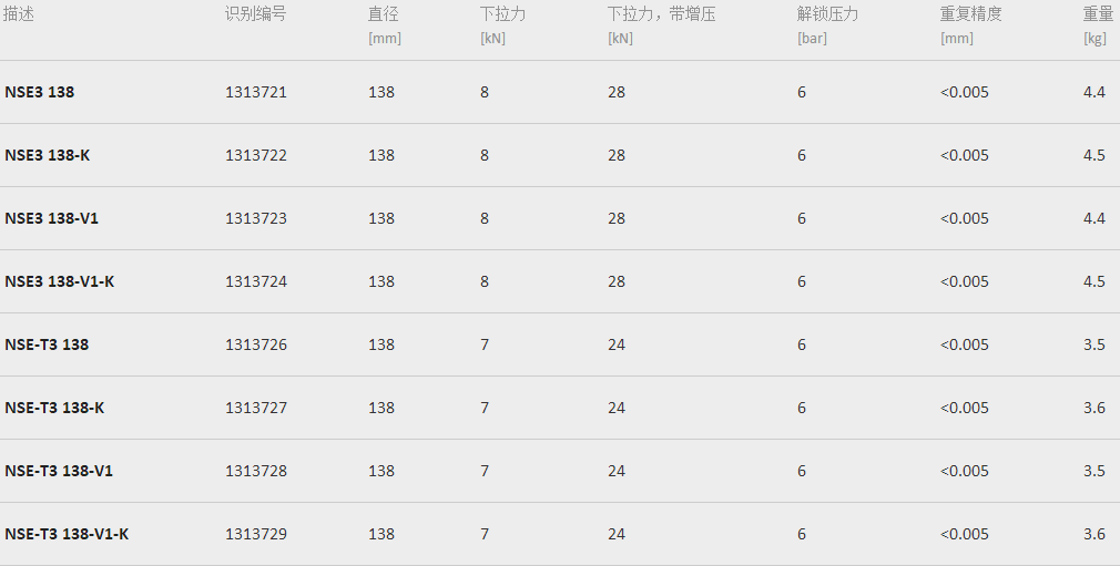 NSE3系列性能是在暢銷系列 VERO-S NSE plus 基礎(chǔ)上,進一步提升不僅增大了下拉力,模塊主體的尺寸穩(wěn)定性也得到增強。因此,新模塊NSE3系列能夠吸收更大的傾斜力矩和橫向力。另外,還具有一項獨有功能,可以使用不同配置延長模塊。其最顯著的特征就是可選配一個彈簧驅(qū)動的錐形連接件,能在提起定位銷后立即鎖定模塊的更換接口。
