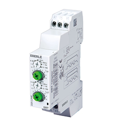 德國EBERLESB-Line系列的星三角開關。功能和時間范圍選擇通過可鎖定旋轉開關在前面設置。定時、開關狀態和工作電壓的顯示可以持續監控功能狀態。功能描述:施加工作電壓后,輸出繼電器動作,觸點15、18閉合設定時間。選定的開關時間過后,觸點15和28閉合。該觸點保持閉合狀態,直至工作電壓關閉。認證:UL和CSA。2個常開觸點,0.1 s...100小時,開關時間20...140ms,星三角繼電器,7個時間范圍,7個開關時間范圍(兩個旋轉開關),寬度22.5 mm,安裝在DIN導軌上,帶指示工作電壓和開關狀態的LED,多電壓,自熄外殼材料,防護等級:外殼IP 50,端子符合VGB4,認證:UL和CSA。