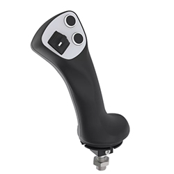 ①elobau的操縱桿手柄341G/342G和361G/362G用于非公路機械的人體工程學操作、工業卡車貨叉的升降以及各種附件的操作。