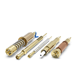 開爾文探針由兩個相互獨立且絕緣的測量通道組成。德國FEINMETALL探針經典的測量方法是基于流經測試項目并產生電壓的外加電流。這與被測電阻成正比。由于I=常數且電壓表的內阻非常高,因此測量中不包括引線電阻和接觸電阻。通過這種測量方法可以獲得非常高的精度。通過一對開爾文探針進行接觸,最好非常靠近測試項目。指定的恒定電流(力信號)通常流經外導體,而電壓(感測信號)則通過內導體測量。