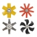 ③葉輪可配置3/5/6/8個鐮刀形右葉片,設(shè)置角度從20°到37.5°,并產(chǎn)生吸入或吹出氣流