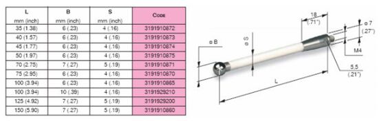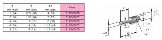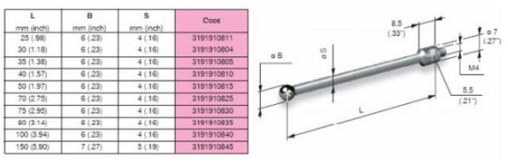 MARPOSS根據(jù)客戶(hù)需求可以提供陶瓷和鋼兩種材質(zhì)的測(cè)桿。在選擇測(cè)桿的時(shí)候,應(yīng)盡可能使用最短的測(cè)桿當(dāng)必須使用長(zhǎng)的測(cè)桿時(shí),最好選擇陶瓷材料的測(cè)桿,盡可能避免使用延長(zhǎng)測(cè)桿,特殊測(cè)桿可以特殊訂購(gòu)。