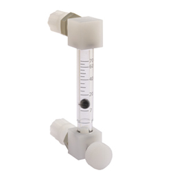 FM40浮子式流量計由一根內部向頂部呈錐形加寬的直立玻璃管組成,浮球可以在玻璃管中自由上下移動,頭部和底部帶有集成的PVDF針閥。用于固定頭部和腳部的主體是最大4 mm深的“前面板”,帶有兩個相應的安裝孔。介質通過管道從底部向頂部流動,并提起浮球,直到管壁和浮球之間有一個環形間隙,從而使作用在主體上的力處于平衡狀態。浮球的每個位置(取決于玻璃或Hastelloy®C制成的測量范圍)對應于特定的流速,然后在校準刻度上可見。