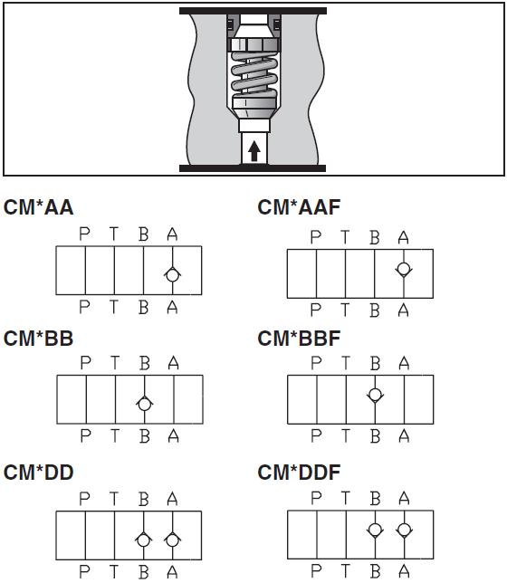CM, ZRV系列閥體采用不銹鋼制造,內部硬化鋼組件提供額外的強度和耐久性,延長使用壽命。parkerCM,ZRV疊加止回閥能夠在'P','A','B','T'口組合使用。