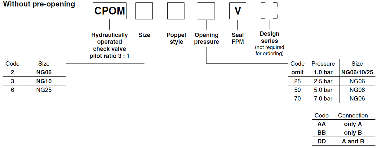PARKER止回閥CPOM系列產品選型: