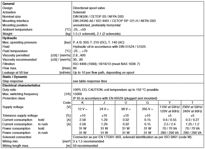 NG06方向控制閥D1VW系列可提供高功能限制80l/分鐘,節(jié)能降壓。各種各樣的閥芯選項(xiàng)允許設(shè)計(jì)液壓回路的數(shù)量不受限制,使用8瓦特線圈,經(jīng)過(guò)ATEX認(rèn)證,該閥也可作為夾層式。