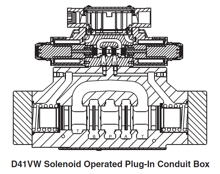 PARKER換向閥D41系列液壓方向控制閥,高性能,先導式2級,4路電磁控制閥。閥門符合NFPA的D07,CETOP7安裝模式。D41系列方向閥由一個5室式主體,表面硬化滑閥芯,和一個先導閥或先導油操縱。