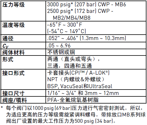 PARKER球閥MB產品參數: