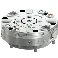 內部裝配的彈簧組提供模塊的夾持力。軸向活塞和專利驅動機構將彈簧力轉化為夾持銷上的最大下拉力。夾持是由兩個夾持滑塊實現,自動鎖定。此外,集成的增壓功能會增大下拉力。模塊可使用 6 bar系統壓力打開。