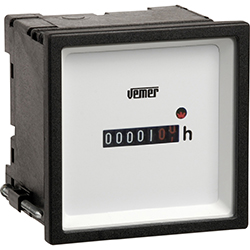 ①帶有面板安裝和24 V AC電源的小時表,通過螺絲端子或6.3毫米faston連接。該設備的尺寸為36x24。