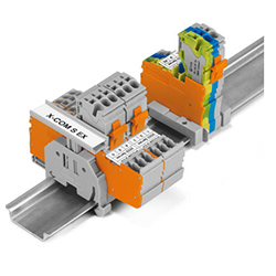 WAGO的可插拔X-COM®S-SYSTEM軌裝式接線端子也可提供防爆認證。這些版本提供“nA”類型的保護,并獲準在2區危險區域使用。